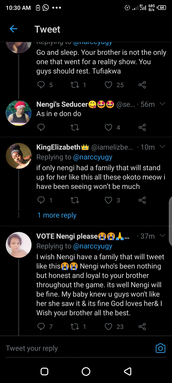 This made fans say they just don't want Nengi, that the family doesn't like her because of reasons known to them.