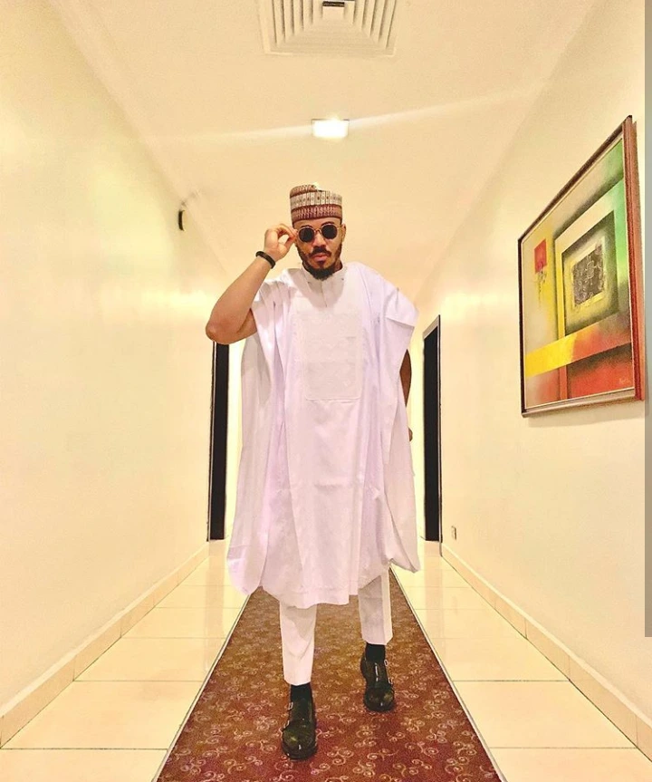 His most recent outing, at yesterday's final Saturday reunion party, had him wearing a white agbada and yet again, a distinctly designed cap.