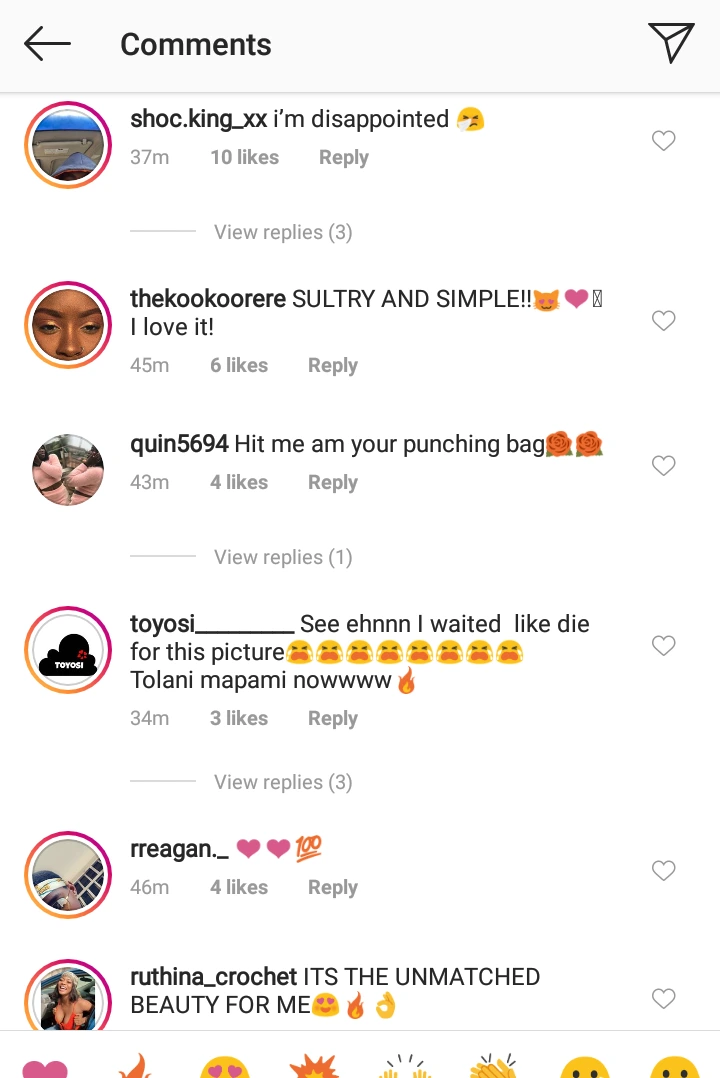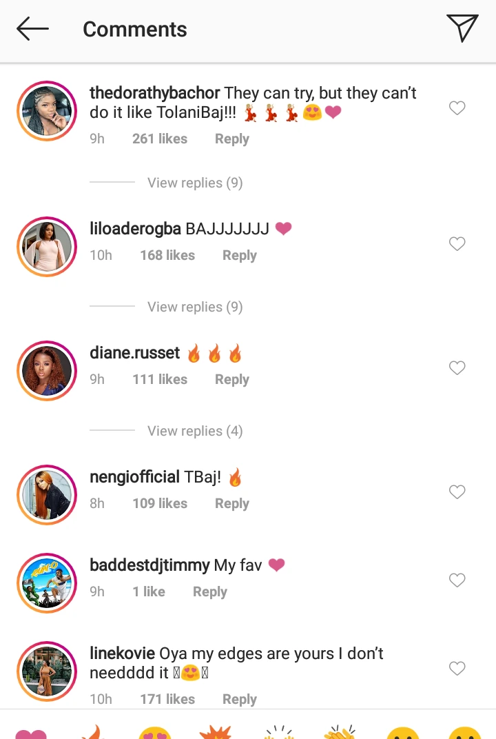 Due to this post, several fans and followers of Tolanibaj have went below the post to share their thoughts about the picture