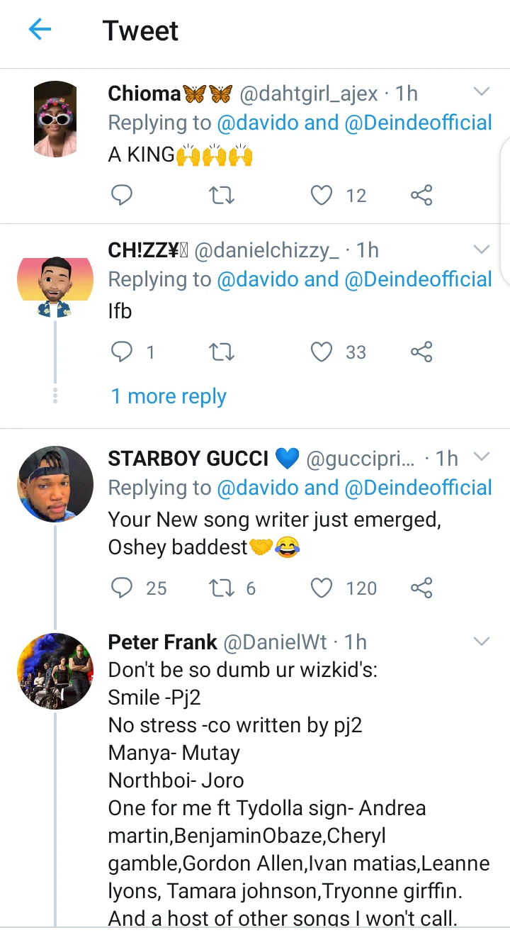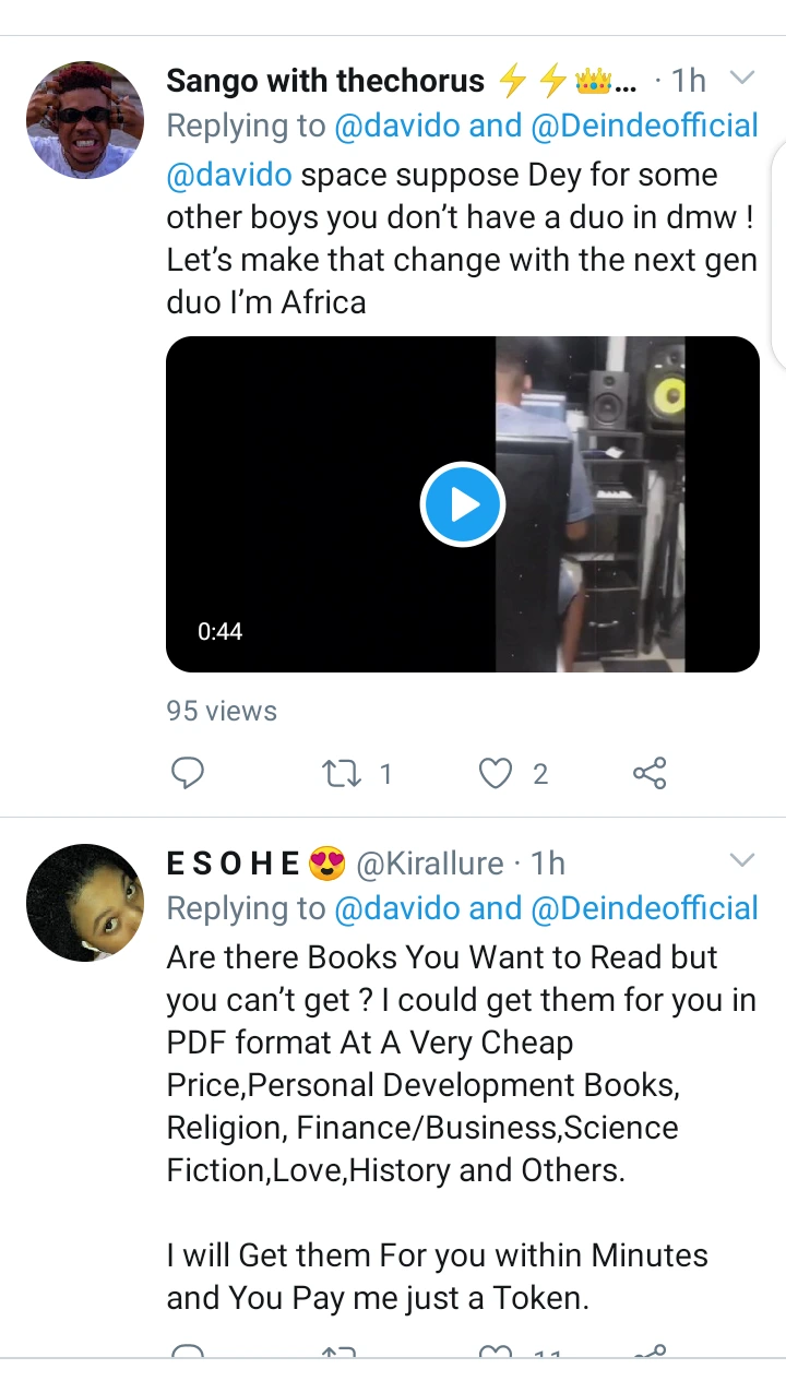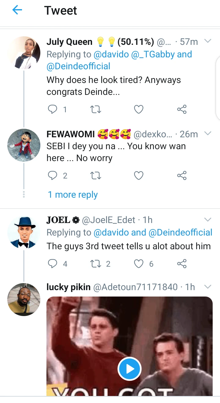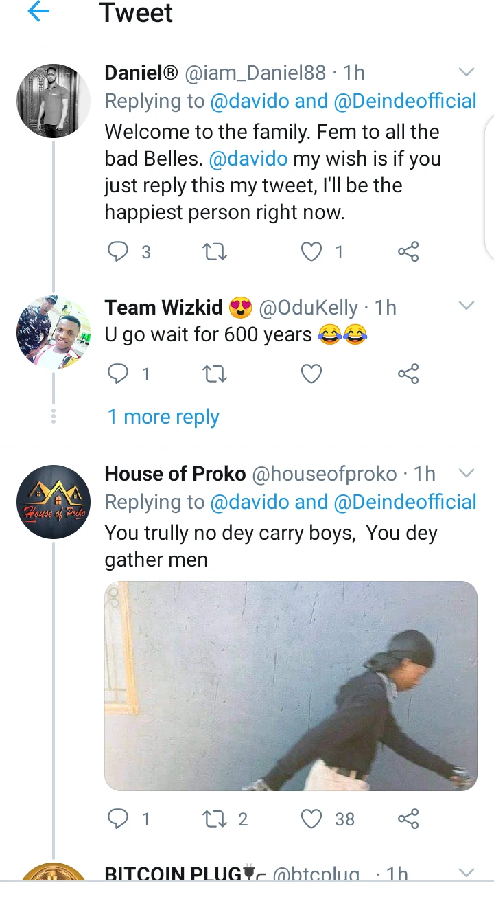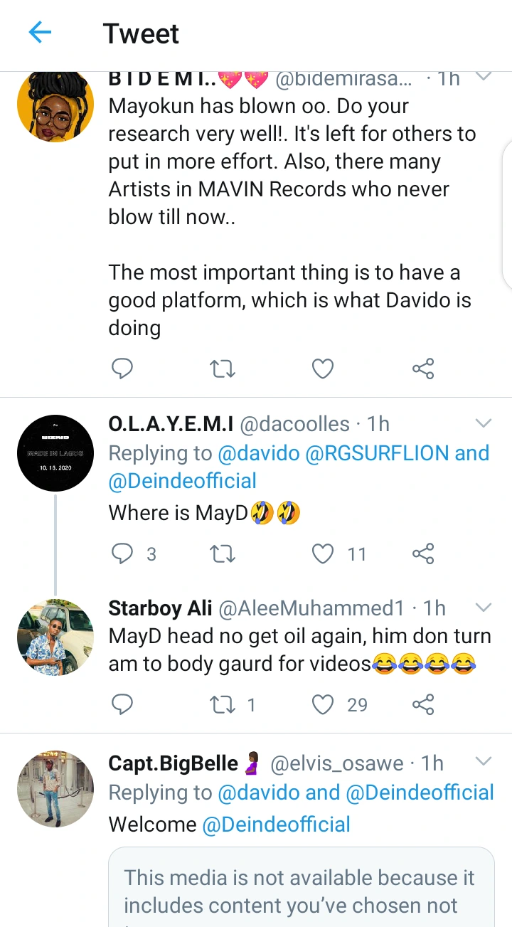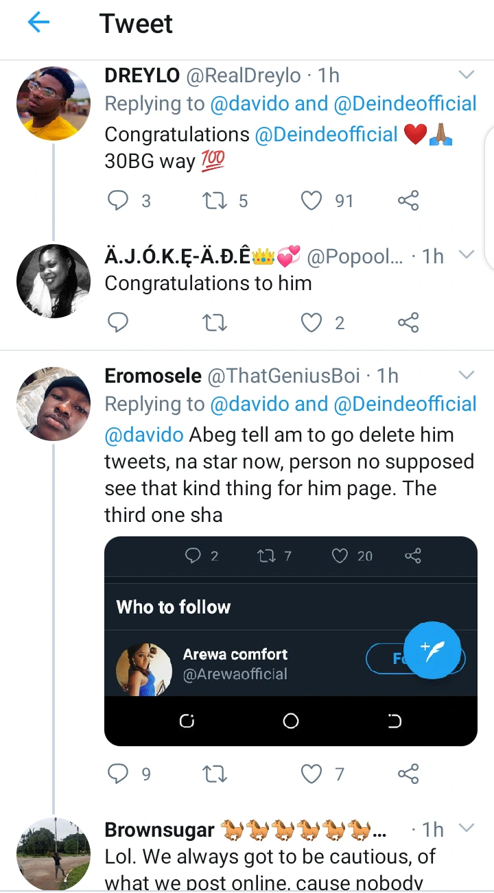 According to Davido's tweets, he welcomed Deinde into the DMW'S family saying he is very talented and Nigerians should watch out for him. Having seen the likes of Peruzzi, Dremo, Mayorkun And many others succed under the DMW Family, we should definitely be expecting something unique from him.